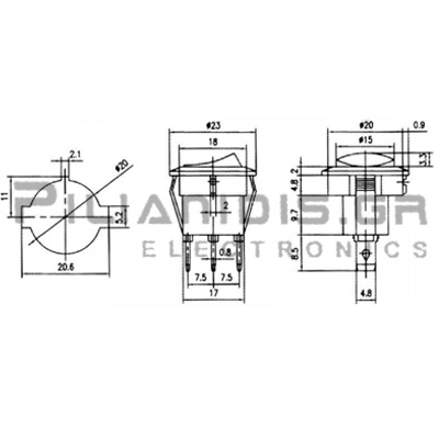 - Διαστάσεις Διακόπτη: O 23x24.9mm