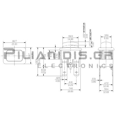- Διαστάσεις Διακόπτη: 18.8x12.8x15mm