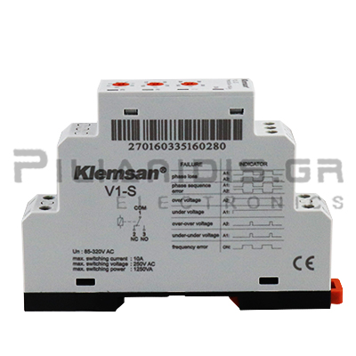 Επιτηρητής Τάσης | Τριφασικός | 140 -310VAC (L-N) | 1 x Μεταγωγική επαφή (5A/250V)