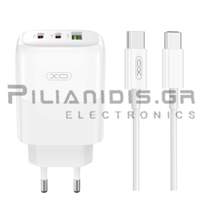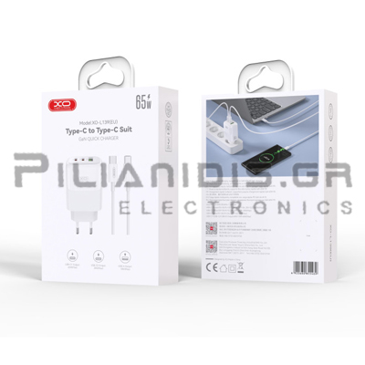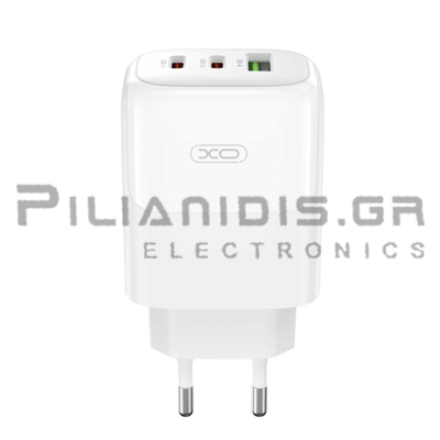 Φορτιστής USB Type-C | PD65W 20V/3.25A | (2xType-C & 1xUSB A) | Λευκό
