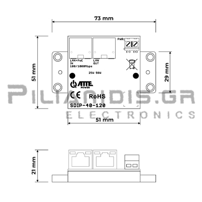 Gigabit POE Adapter | POE LAN σε LAN + 12Vdc 40W | 10/100/1000Mbps | Vin: 44-56Vdc