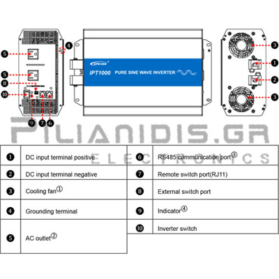 Inverter Καθαρό Ημίτονο 1000W | Vin: 12Vdc | Vout: 230VAC | Δυνατότητα Απομακρυσμένου Ελέγχου