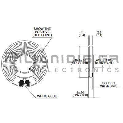 Mεγάφωνο Ø30x5mm 32Ω 0.2W 300Hz - 6KHz