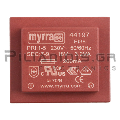 Μετασχηματιστής Πλακέτας | 3,2VA | 18V | 178mA