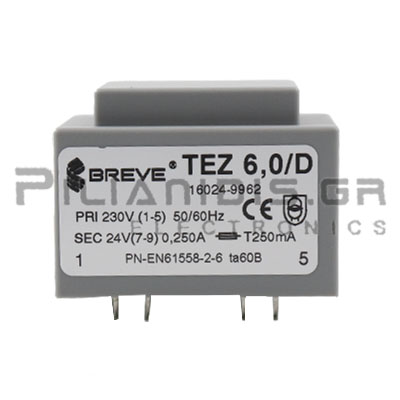 Μετασχηματιστής Πλακέτας | 6.0VA | 24V | 250mA
