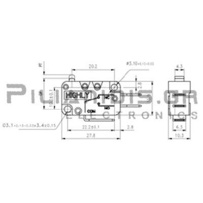 Μικροδιακόπτης 3 Επαφές 16A/250V με Έλασμα Μακρύ