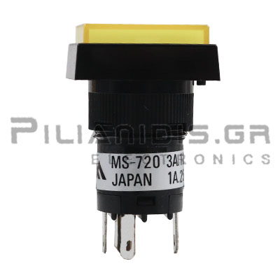 Μπουτόν Latching | Ø16.2mm | ON - ON | 1A/250V | Κίτρινο | Υποδοχή Λυχνίας