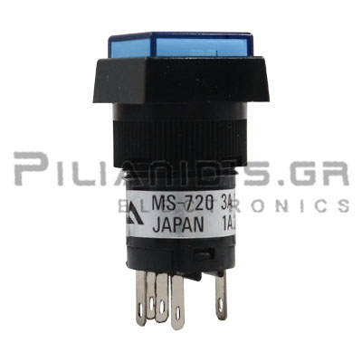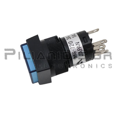 Μπουτόν Latching | Ø16.2mm | ON - ON | 1A/250V | Μπλε | Υποδοχή Λυχνίας