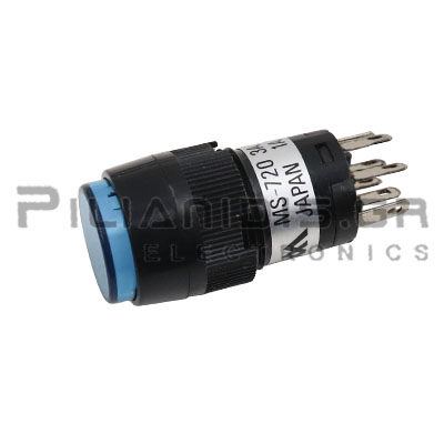 Μπουτόν Latching | Ø16.2mm | ON - ON | 1A/250V | Μπλε | Υποδοχή Λυχνίας