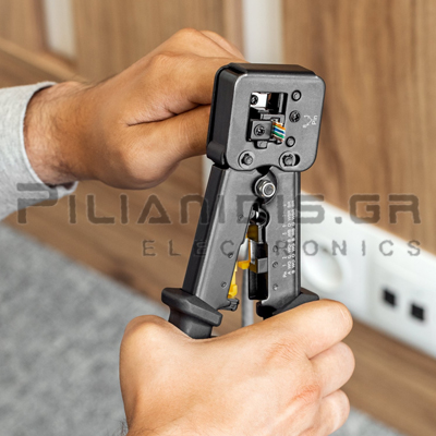 ΠΡΕΣΣΑ ΤΗΛΕΦΩΝΙΚΗ RJ11, RJ12 / RJ45 (6P4C, 6P6C, 8P8C) PASS THROUGH ΜΕΤΑΛΛΙΚΗ ΜΕ ΚΑΣΤΑΝΙΑ