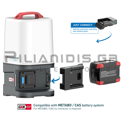 - Συμβατό με το σύστημα μπαταριών METABO / CAS και όλες τις άλλες μπαταρίες 18 V/20 V χρησιμοποιώντας το ΣΥΝΔΕΣΜΟ SCANGRIP