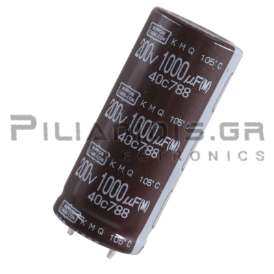 Πυκνωτής Ηλεκτρολυτικός 1000μF 105℃ 200V Ø22x50mm P10.0 Snap-In
