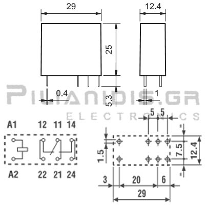 Ρελέ 12VAC 16A/250VAC 80R 1 x Μεταγωγική Επαφή