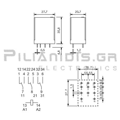 Ρελέ 48VAC 10A/250VAC 770R 3 x Μεταγωγικές Επαφές