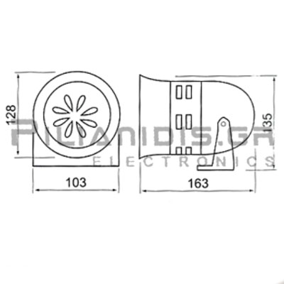 Σειρήνα Περιστροφική Μεγάλη 230VAC 110dB Ø129x160mm