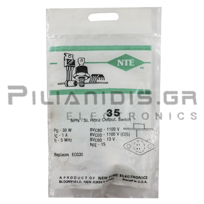 Transistor NPN Vceo:1100V Ic:1A Pc:30W 5MHz TO-66
