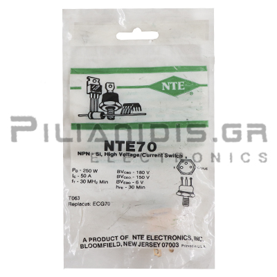Transistor NPN Vceo:150V Ic:50A Pc:250W 30MHz TO-63