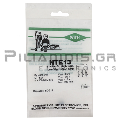 Transistor NPN Vceo:20V Ic:0.5A Pc:600mW 200MHz 3-SIP