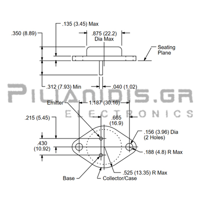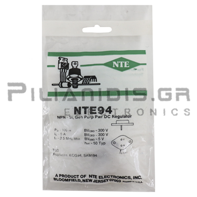 Transistor NPN Vceo:300V Ic:5A Pc:100W 2.5MHz TO-3