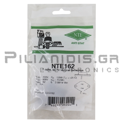 Transistor NPN Vceo:400V Ic:10A Pc:125W 2.5MHz TO-3