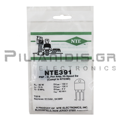 Transistor PNP Vceo:-100V Ic:-10A Pc:80W 3MHz TO-218 (TO-3PN)