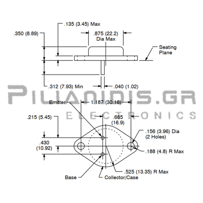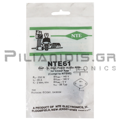Transistor PNP Vceo:-140V Ic:-20A Pc:250W 2MHz TO-3