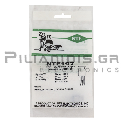 Transistor PNP Vceo:-80V Ic:-7A Pc:50W 10MHz TO-220