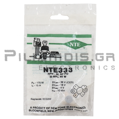 Transistor RF NPN Vceo:18V Ic:15A Pc:175W (up 30MHz 13dB) Screw Mount