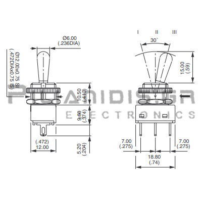 ΔΙΑΚΟΠΤΗΣ Τoggle Ø12.0mm ΟΝ-OFF-ΟΝ 6Α/250V