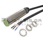 51-SI018PDS05W3SNCSensor Inductive Ø18mm PNP (NC) 12-24Vdc 3-Wire D: 5mm