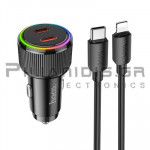 Car Charger Vin: 12/24Vdc 1x USB A(18W) + 1x Type C(45W)