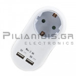 07-20-COM040012Schuko adaptor - Charger 1 male - 1 female & 2 x USB 5V/2.4A White