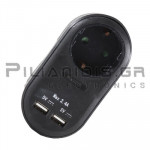 07-20-COM043012Schuko adaptor - Charger 1 male - 1 female & 2 x USB 5V/2.4A Black