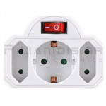 07-20-COM040001Schucko adaptor 1 male - 2 female and 1 Schuko with switch White