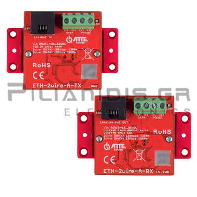 Industrial Extender 2-Wire to Ethernet | LAN: 100Mbps up 300m | Vin: 12-56Vdc ή POE: 24-56Vdc