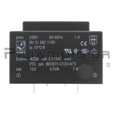 Transformer | 4.5VA | 230V | 15V | 300mA