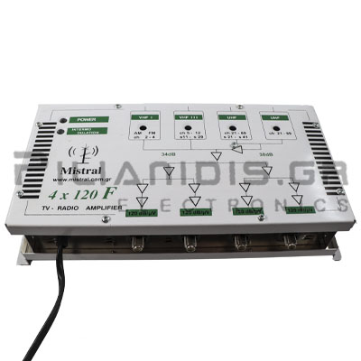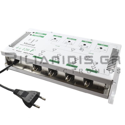 Multiband Amplifier | RF Out: 4x120dB | RF In: FM , VHF 10 - 28 dB , 2xUHF 12 - 32 dB