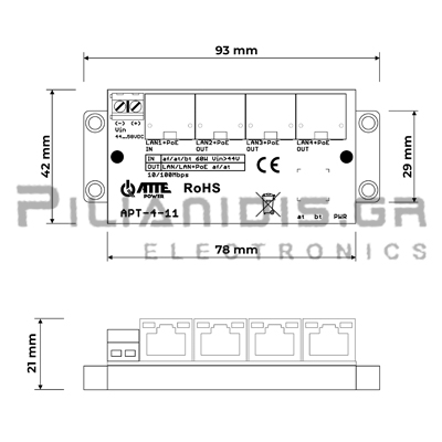 POE Switch 4 Ports "Built-in Unit" | 10/100Mbps | Passive POE | Vin: 44-58Vdc