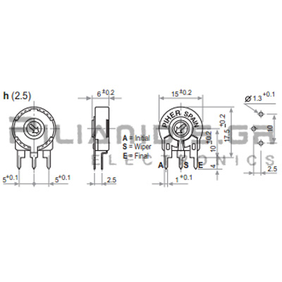 Potentiometer 15mm Vertical 250.0ΚΩ