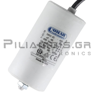 Motor Run Capacitor 45μF | 450VAC | 50Hz | Ø50x94mm | ΜΚΑ With Cable