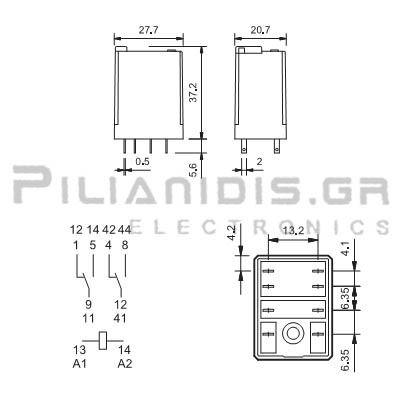 Relay Ucoil: 220VDC 54.0K 10A/250VAC DPDT