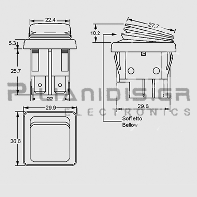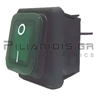 Rocker Switch 22x30mm ΙΡ65 2 x ON - OFF 16Α/250V Green