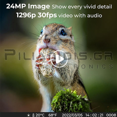 TrailCamera | 24MP (2304x1296 30fps) | Trigger 0.2s | 120℃| 4xAA | IP66