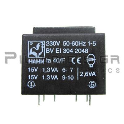 Transformer | 2.6VA | 230V | 2x15V | 2x87mA