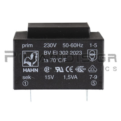 Transformer | 1.5VA | 230V | 15V | 100mA