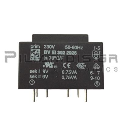 Transformer | 1.5VA | 230V | 2x6V | 2x83mA