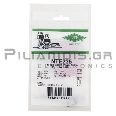 Transistor RF NPN Vceo:65V Ic:3A Pc:12W 300MHz TO-220