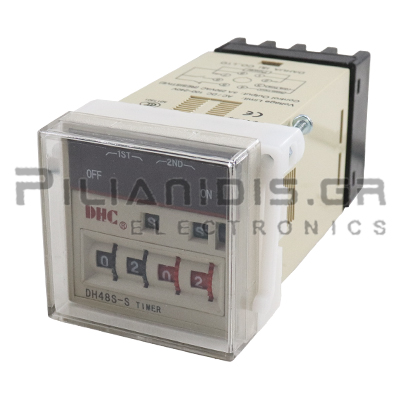 Twin Timer | 48x48mm | T: 1s - 99m | Digital Panel, Adj. Analog | 100-240VAC-dc