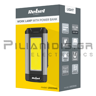 Workshop lamp LED Rechargeable | 4W/300lm - 6W/500lm | 4.2V / 1800mAh | IP65